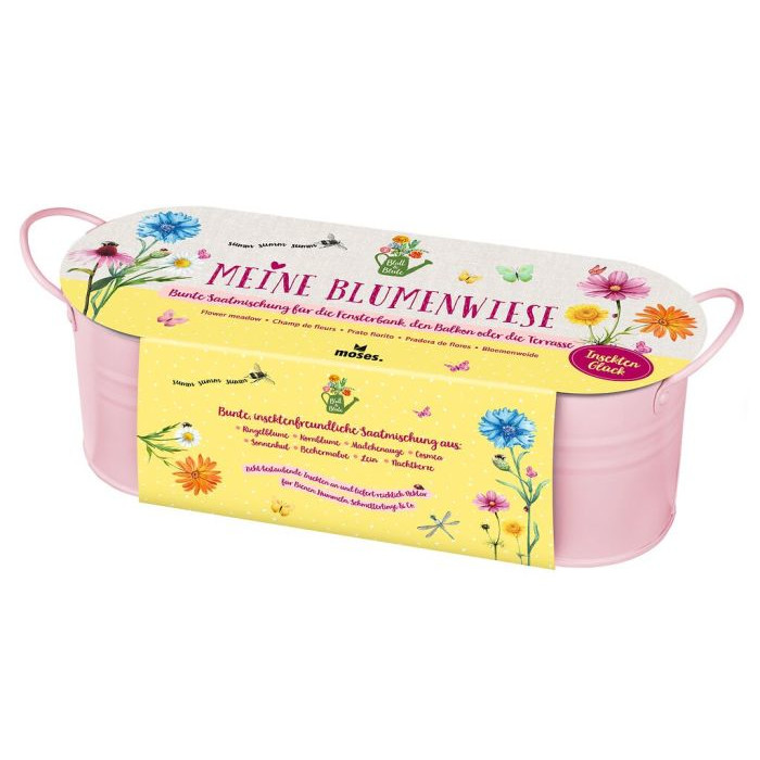 Mit dieser dekorativen Zinkwanne lässt sich ganz einfach eine kleine Blütenoase erschaffen. Erde und Saatgut sind bereits enthalten, sodass die Aussaat sofort beginnen kann. Die vielfältige Mischung aus farbenfrohen Blumen sorgt nicht nur für sommerliche Stimmung, sondern zieht auch Bienen, Hummeln und Schmetterlinge an. Die Zinkwanne ist ein blühender Akzent und zugleich eine schöne Geschenkidee.