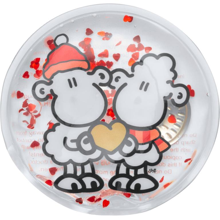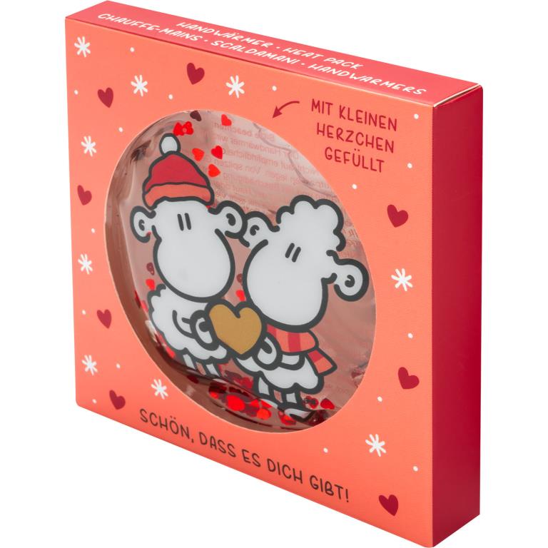 Der sheepworld Handwärmer mit rotem Herz-Glitter ist in einer dekorativen Geschenkbox verpackt. Material des Handwärmers: PVC. Durchmesser 9 cm.