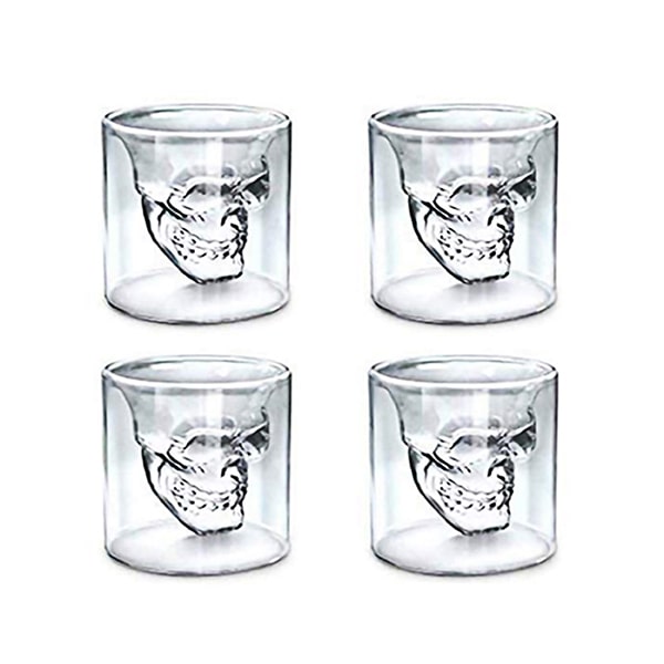 Das Set besteht aus vier Schnapsgläsern in Totenkopf-Optik. Jedes Glas hat ein Fassungsvermögen von 25 ml. Handwäsche empfohlen.
