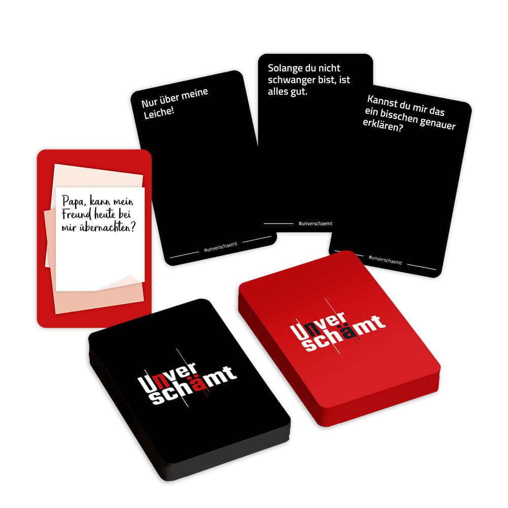 Das Unverschämt Original-Partyspiel mit verrückten Nachrichten und frechen Antworten. Mit 360 Antwort- und 120 Fragekarten sorgt Unverschämt durch lustige Kombinationen für echte Lacher. Reagiere auf alltägliche Situationen unverschämt und gnadenlos aber mit viel Humor.